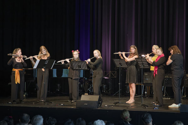 Das große Flötenensemble unter der Leitung von Petra Rossius zeigte einmal mehr wie das gemeinsame Musizieren über verschiedene Altersklassen hinweg zu einem großen Erfolg werden kann. Die Flöten des Ensembles ließen die „Ankunft der Königin von Saba“ von Georg F. Händel im prächtigen Thronsaal von König Salomo vor den Augen der Zuhörer erscheinen.