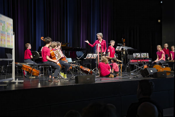 Es folgten mehrere beeindruckende Auftritte der jüngsten Schülerinnen und Schüler im Streicherensemble Piccolini und im Ensemble Kunterbunt.